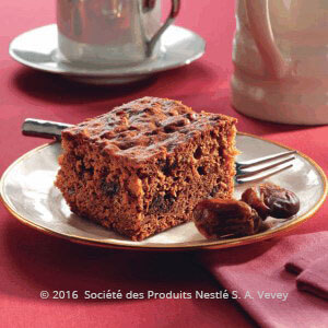 4. يُسكب المزيج في قالب خبز بعد دهنه بالزبدة ورشّه بالدقيق. تُخبز الكعكة في فرن محمّى على 175 درجة مئوية لمدّة تتراوح بين 40 و45 دقيقة أو حتّى يتمّ إدخال سيخ في وسطها وإخراجه منها نظيفاً.