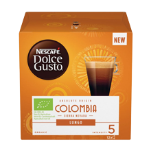 - NESCAFÉ® Dolce Gusto® Colombia Sierra Nevada Lungo is a refined organic Arabica coffee with nutty notes.