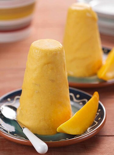 2. Remove from heat and allow the mixture to cool slightly, add Fresh Mango and blend with a submerging blender until smooth.